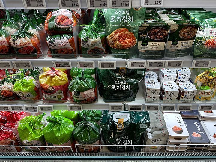 韩国超市出售的拉面种类与口味极为多样,其中的销量之王自然还是辛拉面系列。除此之外,刀切面、炸酱面、海鲜面也颇有人气,口感凉爽的冷面、拌面、荞麦面在夏天更是备受大家的欢迎。