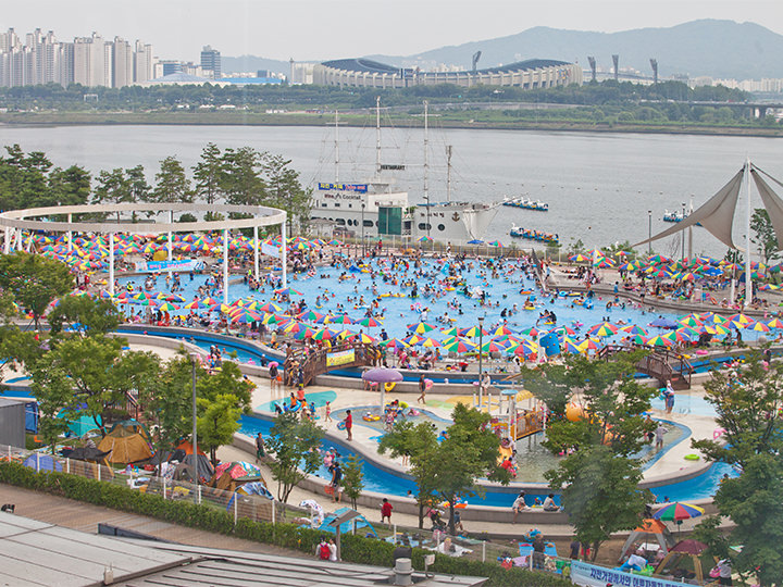 足球场5,篮球场8,羽毛球场4,排球场1,摔跤场1,体力锻炼场1,青少年广场1,网球场9,门球场1,钓鱼场,滑水场,自行车道,汉江游轮码头,水上休闲运动训练场 | 地铁2号线堂山(Dangsan)站4号出口,步行5分钟 地铁9号线仙游岛(Seonyudo)站2号出口,步行10分钟 |