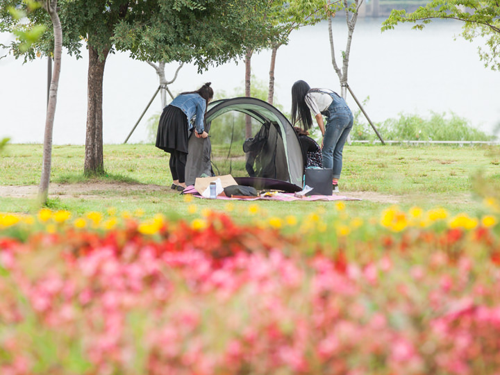 虽然汉江公园设有一些座椅,但如果和朋友们结伴而来的话,搭起露营帐篷,吃着炸鸡啤酒聊着人生,着实惬意!