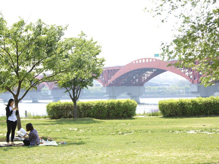 足球场1,篮球场2,轮滑中心,钓鱼场,快艇场,月光彩虹喷泉,自行车道,自行车租赁 | 地铁3号线高速巴士客运(Express Bus Terminal)站8-1号出口,步行15分钟 地铁9号线新盘浦(Sinbanpo)站2号出口,步行20分钟 |