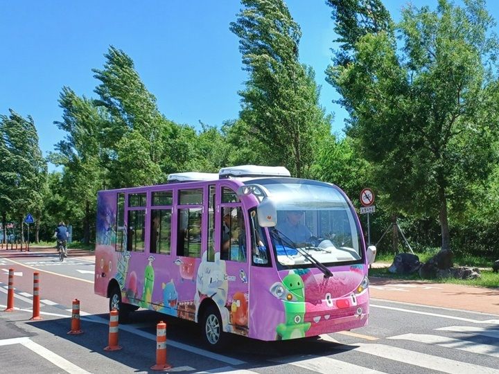 獬豸车是首尔市运营的环保型观光巴士,在盘浦汉江公园与望远汉江公园附近设有站点。如想搭乘,在站点等候即可,想下车时向司机示意。獬豸车车速较慢,仅适合观光代步,赶时间的话不建议选乘。