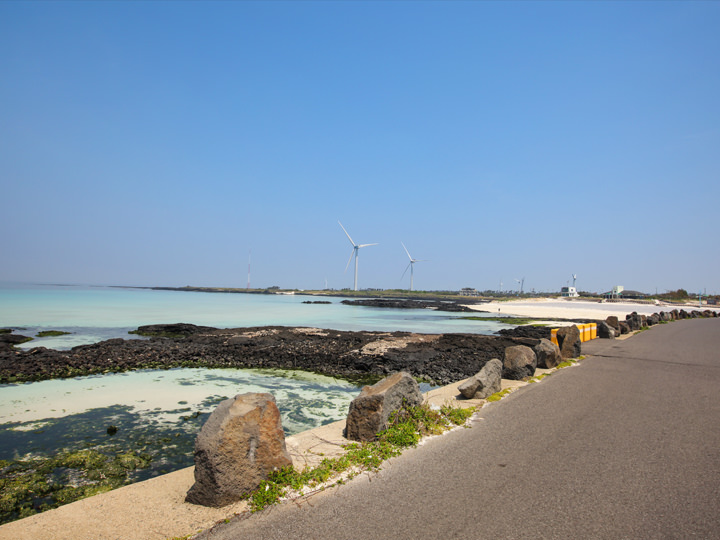 海女博物馆→ 烟台公园→ 面水洞乡村会馆 → 面水田间小路 →别防镇 → 石茶园 → 阁氏堂 →济州兔岛文殊兰自生地 → 下道海水浴场 →地尾峰登山路线→ 地尾峰山顶 →地尾峰下山路线 →终达海边