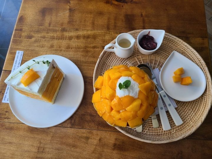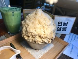 上菜时,红豆沙和、年糕等会单独盛放。可以先单吃刨冰,感受刨冰本身的醇厚香甜,再加入配料一起品尝。下次去东大门血拼购物时,就来这里犒劳一下自己吧!