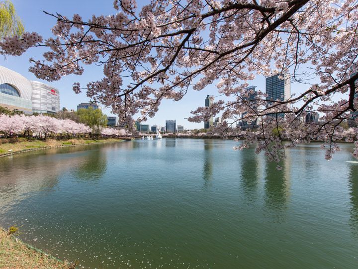 首尔赏樱胜地!环绕乐天世界的美丽湖水