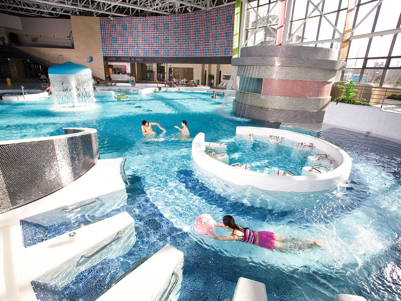 ① 水上乐园SPA使用顺序:购票→入场→存放鞋子→进入澡堂→存放衣物→换号泳衣→享受泡汤→用感应钥匙结算