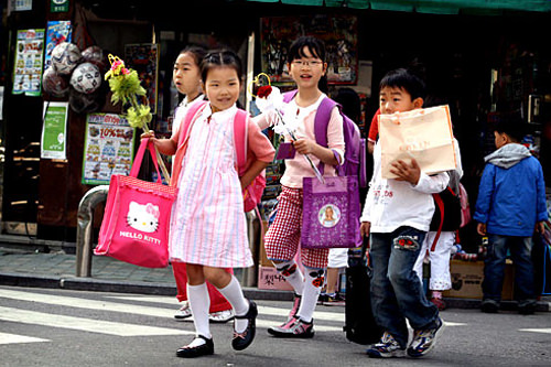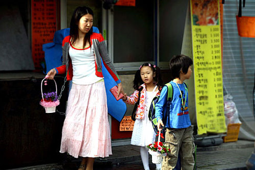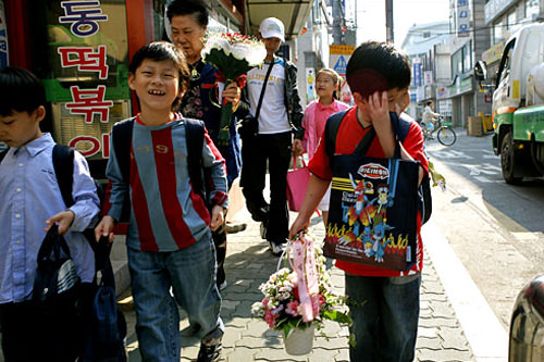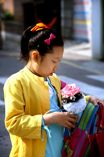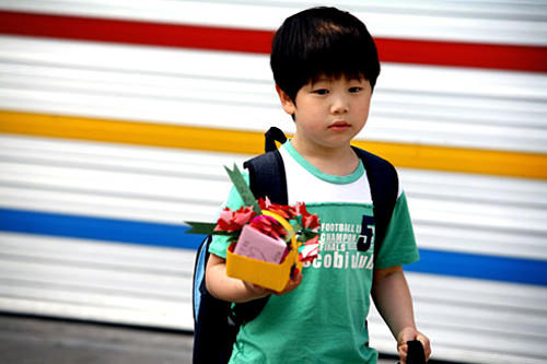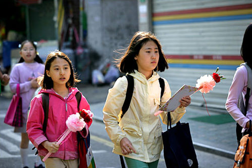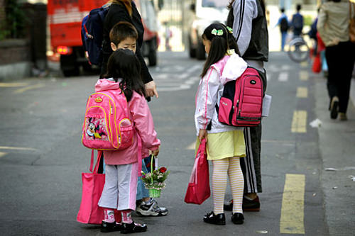 每年的惯例,这一天特有的上学途中风景线
