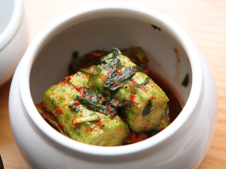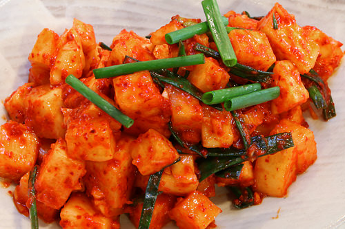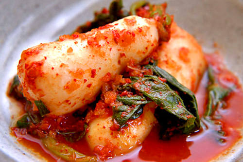 正如其名,“白泡菜”是不使用任何辣味调料,以白菜为原材料腌制而成的白泡菜。小朋友或者是不擅长吃辣的人都可以放心享用哦。在十六世纪末,辣椒传入到朝鲜半岛之前,这种白泡菜一直都是泡菜的主流,它是后来各种新式泡菜发源的鼻祖。