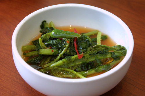 萝卜缨泡菜用的是根茎变粗之前的鲜嫩萝卜缨,淡淡的苦味是最大的特点。常常在米饭里面加入萝卜缨泡菜和辣椒酱等,充分搅拌混合之后制成的萝卜缨拌饭,也是韩国人饭桌上的一道家常菜。被用来当做制作韩国冷面和素面等凉拌面食的配料。