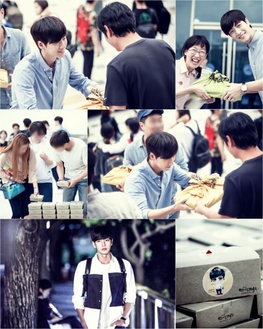9月26日(周六),演员朴海镇为在tvN《奶酪陷阱》片场迎中秋节长假的工作人员亲自准备和分发了150人份的年糕和饮料。