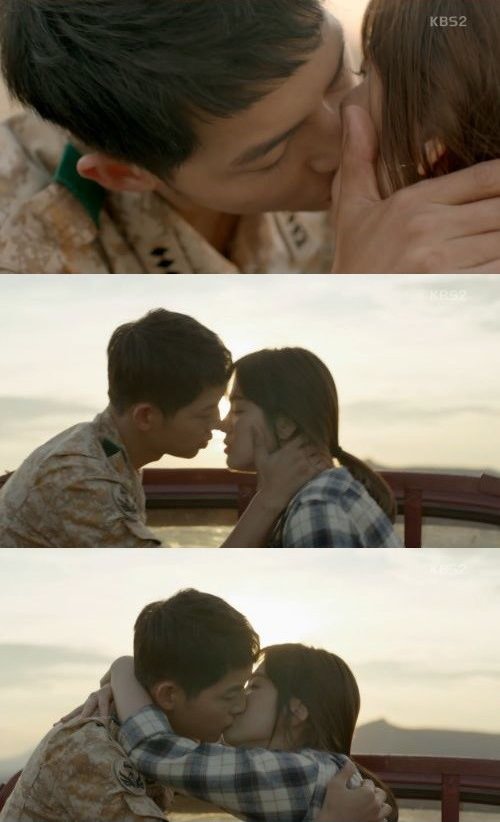 宋仲基的正面突破果然有效。前往出席联合国会议的过程中,宋仲基与宋慧乔遭遇了陷入地雷区而孤立无援的难关。由于宋仲基冷静的应对,宋慧乔得以从地雷区脱身。在回部队的卡车里,只剩下了宋仲基与宋慧乔二人。宋仲基问道“在乘飞机回韩国的名单上有没有姜医生?”,宋慧乔终于进行了告白“因为刘大尉我不会走,想和你在一起”,二人以夕阳为背景甜蜜亲吻。