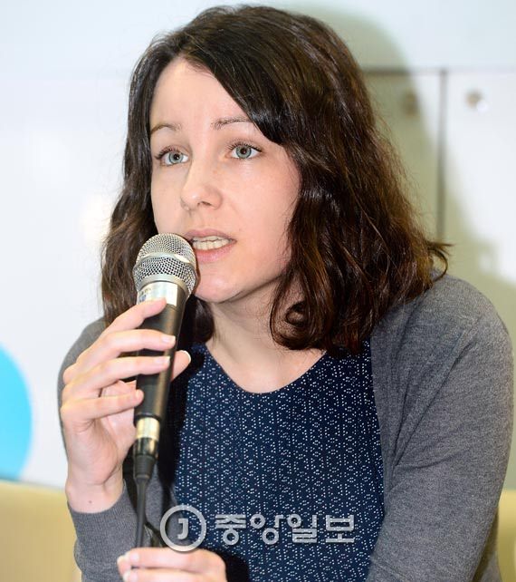 6月15日在首尔三成洞Coex举行的记者招待会上,28岁的英国人黛博拉·史密斯对将韩国小说家韩江的《素食者》翻译成英语的背景这样说道。她受韩国文学翻译院的邀请,为参加在首尔国际图书展期间(6月15日∼19日)举行的韩国文学世界化论坛而访韩。