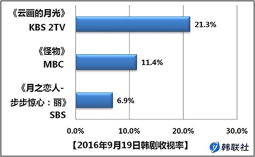 本图表以韩国收视率调查公司尼尔森韩国公布的KBS、MBC、SBS三大电视台黄金十点档月火剧的收视率数据为基础,每天提供前一天统计数据,节假日顺延,结果仅供参考。(完)