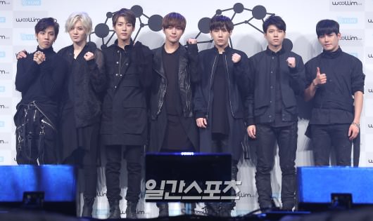 图为组合INFINITE于9月19日下午在首尔汉南洞蓝色广场三星Card Hall举行的第六张迷你专辑《INFINITE ONLY》回归宣传舞台上摆出造型接受媒体拍照。