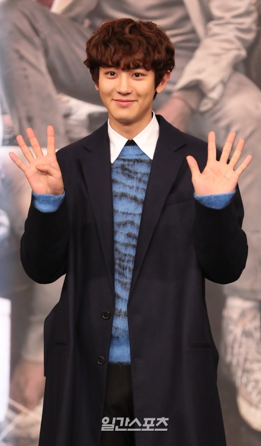 MBC水木剧(周三周四剧)《Missing9》的制作发布会于1月12日下午在首尔上岩洞MBC办公大楼举行。图为灿烈正在摆造型接受媒体拍照。