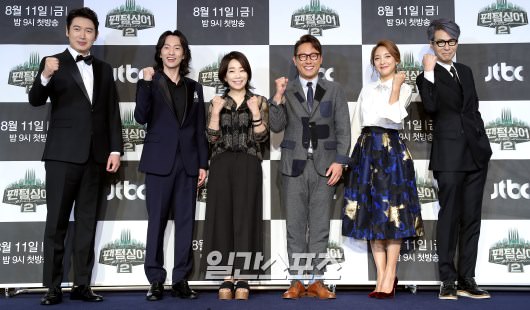 8月10日下午,JTBC综艺节目《幽灵歌手2》制作发布会在首尔麻浦区上岩洞斯坦福大酒店举行,图为出席发布会的出演嘉宾们正在摆出造型接受媒体拍照。 《幽灵歌手2》是韩国国内首个选拔男子四重唱的选秀节目,节目将于8月11日首播。
