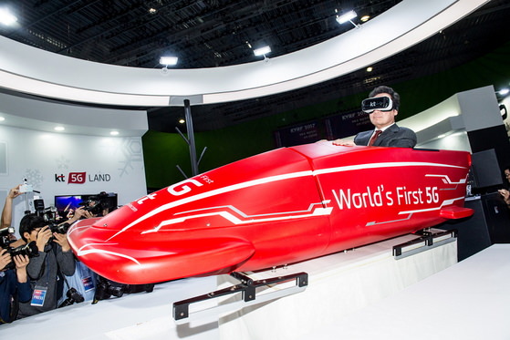 图为韩国国务总理李洛渊出席在首尔上岩洞数码媒体中心举行的韩国虚拟现实(VR)庆典2017并体验了“有舵雪橇VR”,该活动将持续至9月20日。(图片来源:Penta通信)