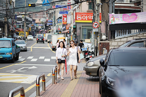 现在正值暑假旅游高峰期,在梨泰院的新人气街区——经理团街能够看到众多韩国年轻人及外国游客的身影。