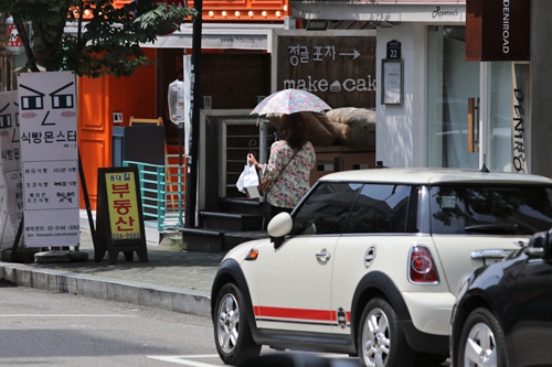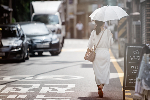 在韩国,以前主要是老人们出门才用遮阳伞,如今年轻的女性们也纷纷用上了这一防晒利器。这也许跟最近的健康美白热风有所关联,而且,今年比往年酷暑来得更早,于是很多人青睐用上了遮阳伞这一更加简单方便的防晒手段。