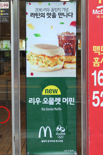 麦当劳推出5种奥运喝彩系列单品。首先,在“1955汉堡”的基础上,加入炸墨西哥胡椒、洋葱、墨西哥烟味辣椒,推出“里约1955汉堡”(单品 5,900韩元,套餐 7,200韩元)。另外,还有早餐单品里约鸡蛋玛芬(3,100韩元)、辣椒奶酪摇摇薯条(2,000韩元)、青柠莫吉托(1,500韩元)、浓缩咖啡奶昔(2,000韩元)。这一系列单品仅销售至8月21日。