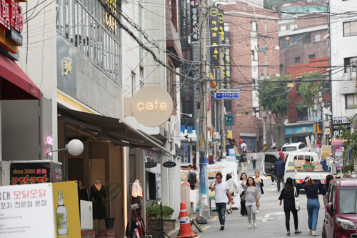从上周开始,韩国的街头商店开始出现各种秋装,尤其作为韩国流行风向标的弘大地区更是如此。此次我们拍摄的地点是从弘大站到新村方向的购物街,这里各种个性时尚店铺云集。