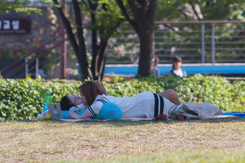 最近韩国的天气非常适合外出散步。躺在公园内的草坪上野餐的人也越来越多。来首尔逛街购物之余,建议到这座美丽的生态公园来小憩一番吧!