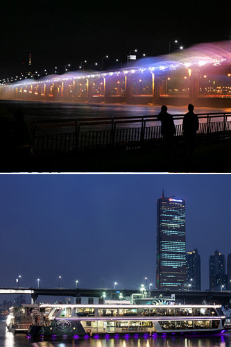 因月光音乐喷泉而声名大噪的盘浦汉江公园(上图)以及有游览船入出港的汝矣岛汉江公园等地,亦是通过韩剧为人熟知。