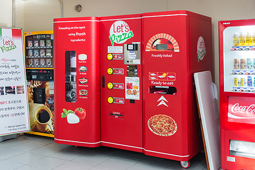 今年5月底,韩国国民大学的校园中出现了一个红色自动售货机。利用这款自动售货机,只需3分钟,便可品尝到美味的披萨了!
