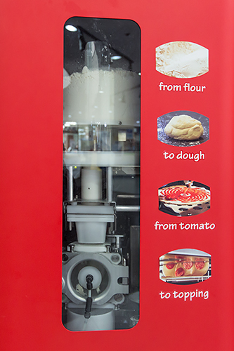 随后便可亲眼看到机器忙碌地和面、揉面、浇汁、加顶,整个过程大约需要3分钟。