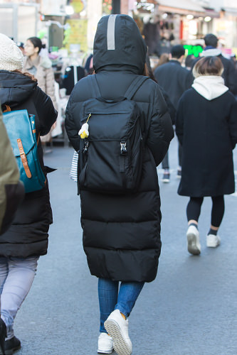 在首尔街头还能看到一同身穿长羽绒服的情侣。兼备时尚性和保暖性的长羽绒服势必会让这个冬天更加温暖。