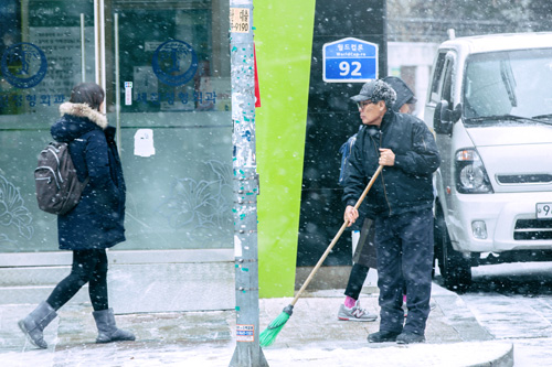 今天早晨首尔的气温降至零下8摄氏度。整个首尔被白皑皑的大雪覆盖。