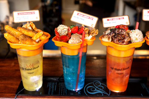 弘大小吃——牛排杯(7,900~12,900韩元)牛排、水果、薯条和饮料的绝妙组合。