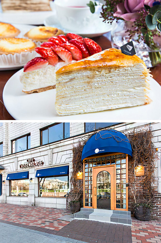 有着20余年历史,依旧保持开业时欧洲田园风格的“CAFÉ L'ASSEMBLAGE”。人气菜单为“薄饼蛋糕”(3,000~9,500韩元)。