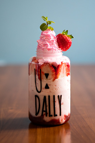 来自全罗北道全州的人气咖啡店“U:DALLY”中颜值超高的“草莓T.O.P”(6,500韩元)也是当下热卖甜品。