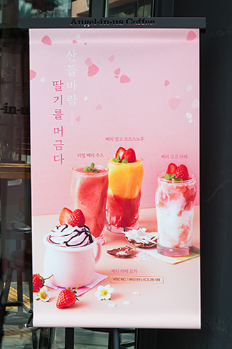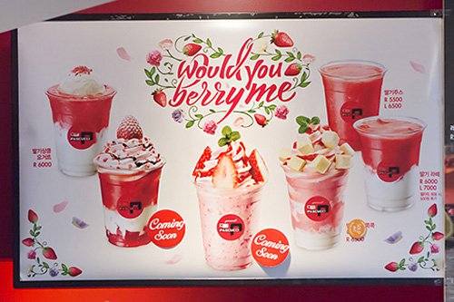 “安琦丽诺咖啡”则将浓缩咖啡与草莓完美融合,推出以“草莓摩卡”(5,300韩元)为代表的4种草莓新甜品。
