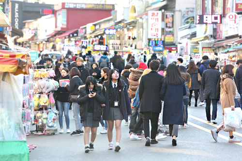 首尔迎来了崭新的春天,在人气景点弘大不难看到人们纷纷换上了春装。