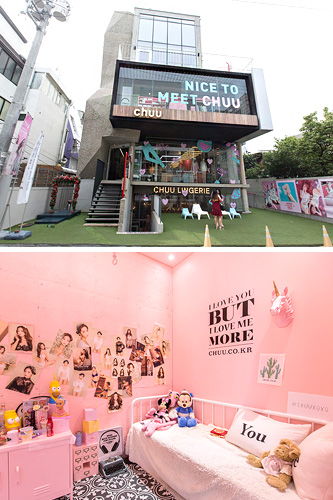 弘大的人气店铺“Chuu”的粉色装修吸引了无数小女心,可以一边购物,一边拍照哦。