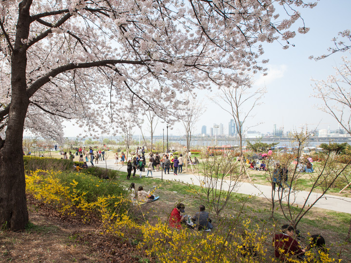 首尔最大的樱花庆典,每年4月上旬在汝矣岛举行