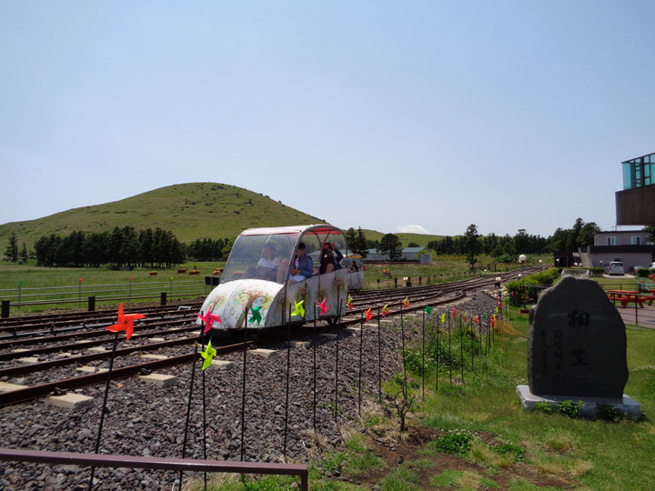 在济州岛东部广阔的草原上骑铁路自行车,体验与大自然融为一体的美妙。