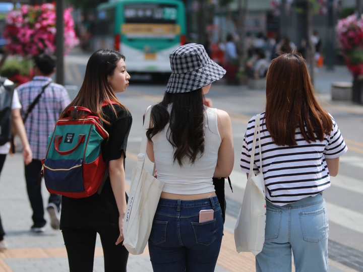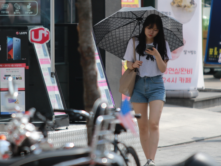 对应高温天气,出行时人们多为短裤短袖的清凉装扮。使用遮阳伞的年轻女性也越来越多,防晒已成为年轻女性的必修课。夏季来韩国旅游时,不要忘了准备一把遮阳伞哦。