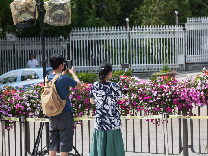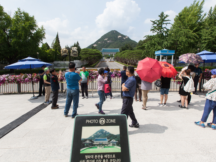 如今,市民及游客可以使用智能手机等移动设备在青瓦台前任意位置和方向拍摄青瓦台。而这之前,仅允许在正门和神武门以青瓦台为背景拍照。