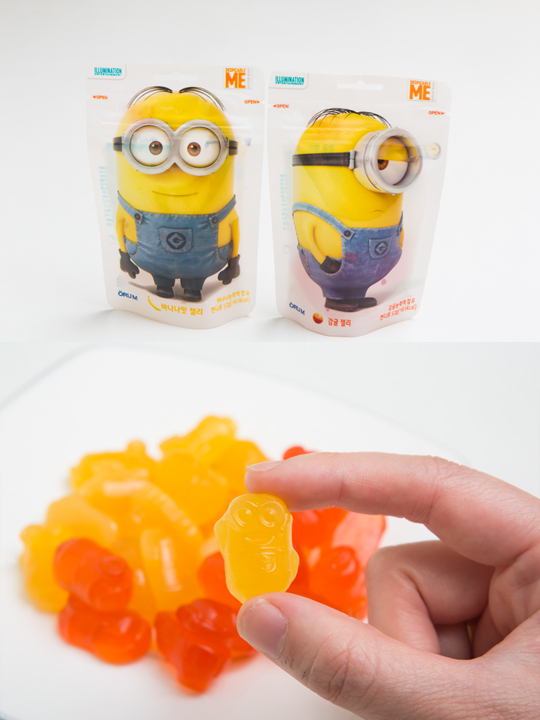 “小黄人果味橡皮糖”(1,600韩元/袋)以酸甜Q弹的口感在韩国圈粉无数,有香蕉、橘子2种口味可供选择。
