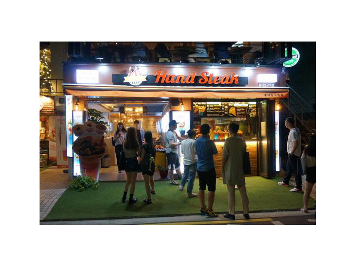 延南洞美食之旅始于城美山路和东桥路交叉的十字路口。若从十字路口朝城美山路走300米左右,就能看到位于三层建筑内的泰国饭馆“Tuk Tuk Noodle泰国”。而且附近还有该饭馆的第二品牌“Soi延南”。图为因牛排杯而著名的“W Hand Steak”。※新闻来源:中央日报
