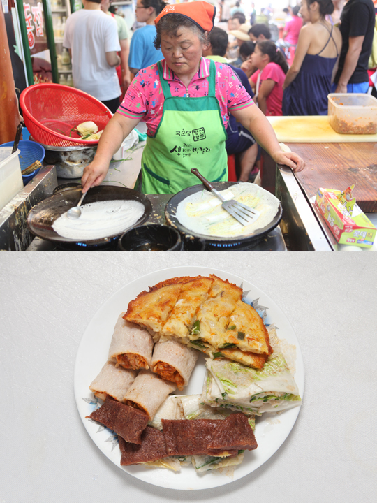 旌善郡位于江原道西北部,这里的“旌善5日市场”每月逢2、7开市。来这里,一定要品尝的美食有荞麦泡菜煎饼(下图)、荞麦面和山野菜拌饭!