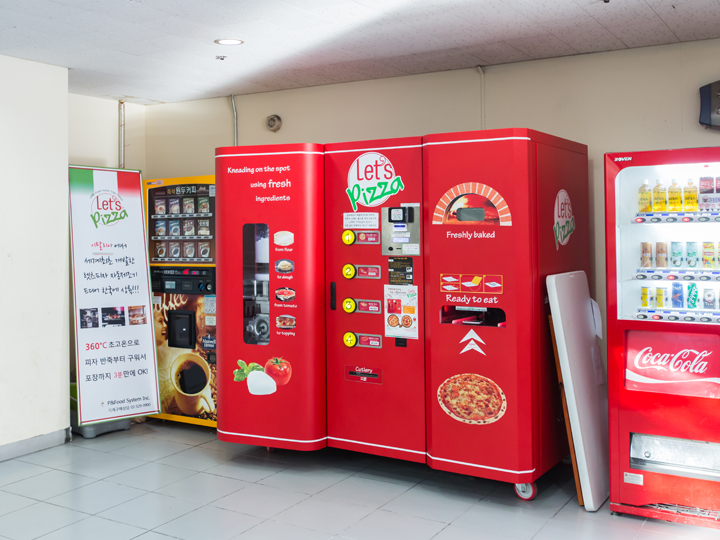 要来一块比萨吗?韩国国民大学校园中引进了这台亮丽的“比萨自动贩卖机”。只需3分钟,便可品尝到美味的比萨。