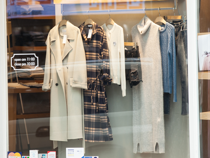 踏入秋季的首尔,气温逐渐下降。新沙洞林荫道的精品小店橱窗上,秋季新衣正在火热上架中。