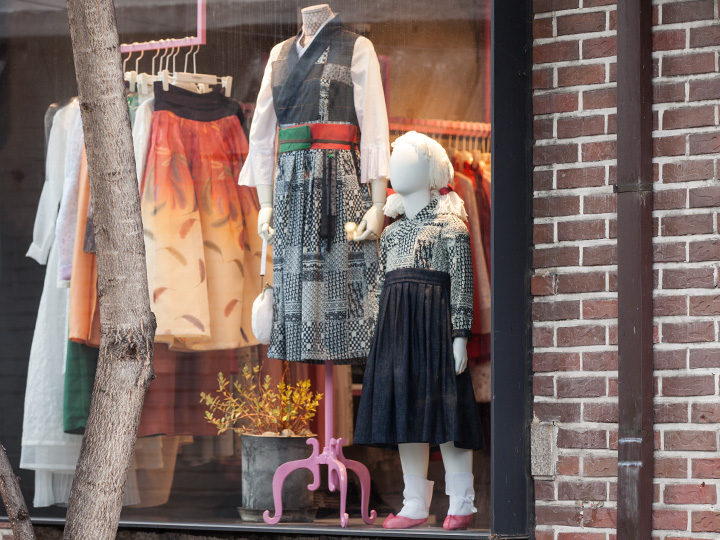 另外,如果你在街头看到穿着图中这种“改良韩服”逛街、拍照的人,不要惊讶,你没有穿越回古代,当下韩国正流行日常改良韩服哦!