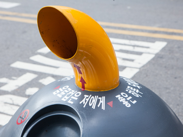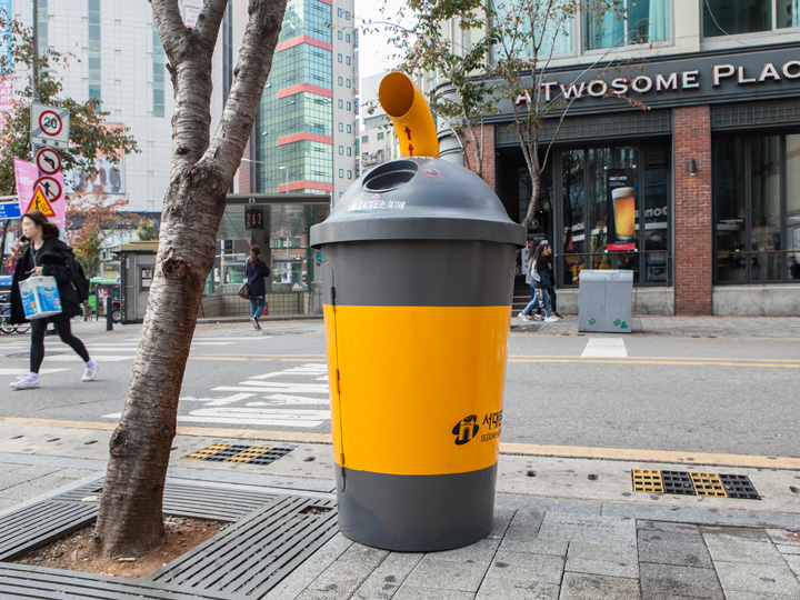 一次性杯子则扔进上面的“吸管”里。这样,不仅防止了恶臭散发,也美化了首尔的环境哦!
