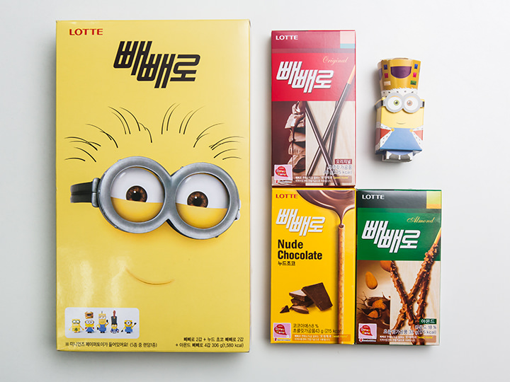 GS25推出的“小黄人Pepero饼干”(9,600韩元)是最近大热产品。这一大盒中包含8盒Pepero饼干和1个折纸小黄人。每个人都可以轻松折出可爱的小黄人,趣味满分。此外,GS25还有更多不同口味的Pepero饼干供您挑选。