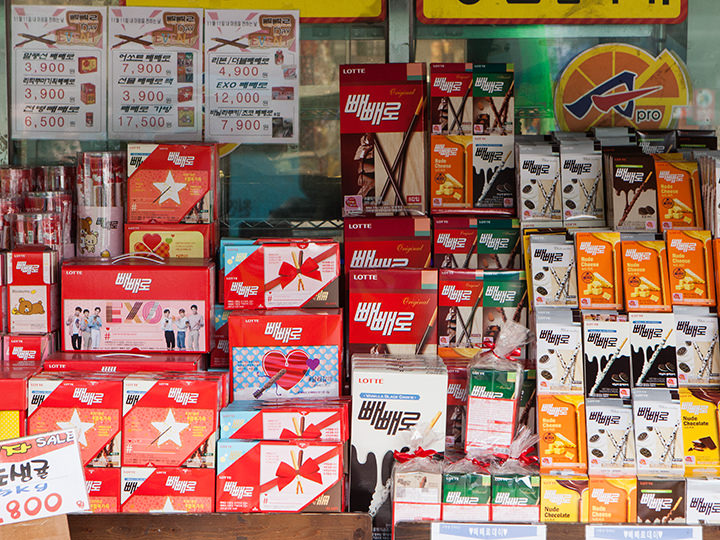 每年11月11日不仅是中国的“购物狂欢节”,也是韩国的“Pepero Day”。这一天韩国人都会互赠Pepero巧克力饼干或小礼物表达心意,街上随处可见包装精致的各式巧克力棒。7-11、CU、GS25等韩国便利店更是推出人气卡通Pepero饼干,让人眼前一亮。
