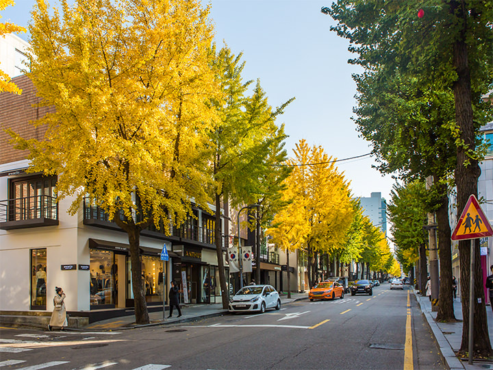 从今天起,首尔最低温度将在零下2~5℃左右,近期来韩国旅游时可要注意保暖哦。另外,林荫道的银杏树早已金黄,形成了一道最亮丽的风景。快抓住晚秋的尾巴,来到这里享受一番别有韵味的购物时光吧。
